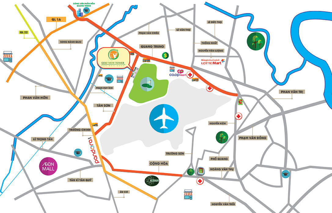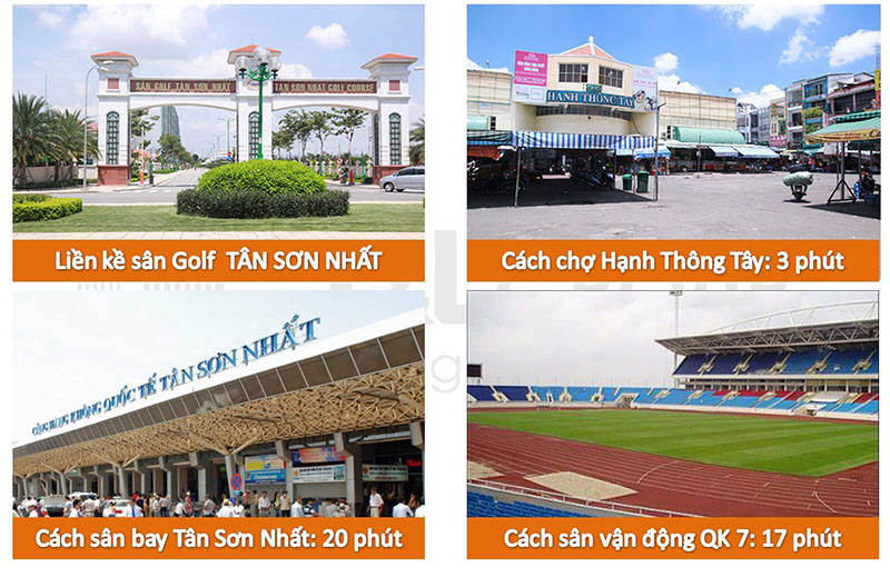 - Ngoài ra, từ dự án Golf View Palace, cư dân chỉ mất khoảng 10 phút để đến sân bay quốc tế Tân Sơn Nhất