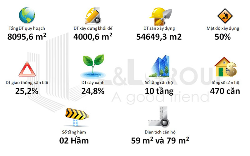 Diện tích đa dạng từ 59 - 79 m2 với 2 phòng ngủ