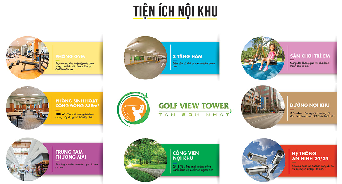 Dự án Căn Hộ Golf View Tân Sơn là nơi an cư tốt vì qui mô khá lớn, khu dân cư biệt lập an ninh tạo ra nhiều giá trị cho cư dân trong căn hộ. Tiện ích nội khu nổi bật với hồ bơi sang trọng rộng 300m2, Phòng tập GYM , Trung tâm thương mại , nhà trẻ, công viên nội khu. Ngoài ra , dự án Căn Hộ Golf View Palace Tân Sơn nằm trong khu vực khá sầm uất nên các tiện ích cộng đồng khá hoàn chỉnh.