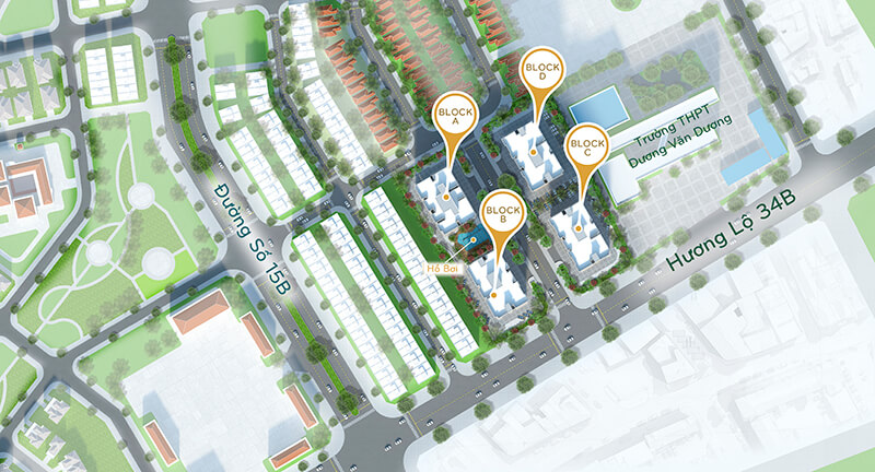 - Trường học: mầm non, cấp 1, 2, 3 liền kề dự án