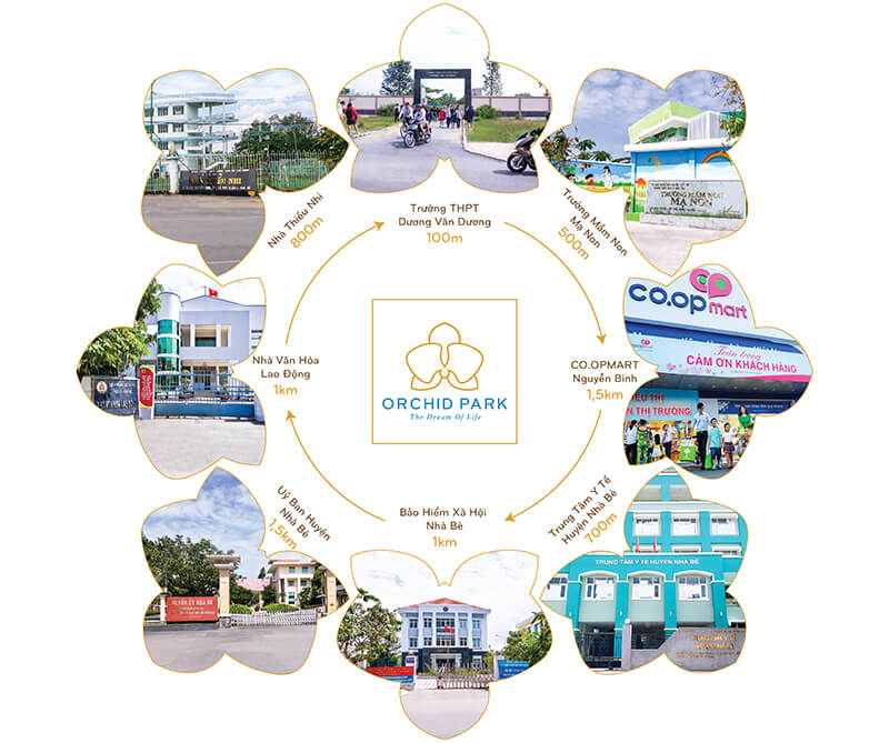 Dự án Orchid Park cách Phú Mỹ Hưng chỉ 3,5 km và cách trung tâm quận 1 chỉ 12km vì thế cư dân sinh sống tại đây chỉ mất từ 10-20 phút di chuyển là có thể tiếp cận nhiều tiện ích của các khu vực lân cận.