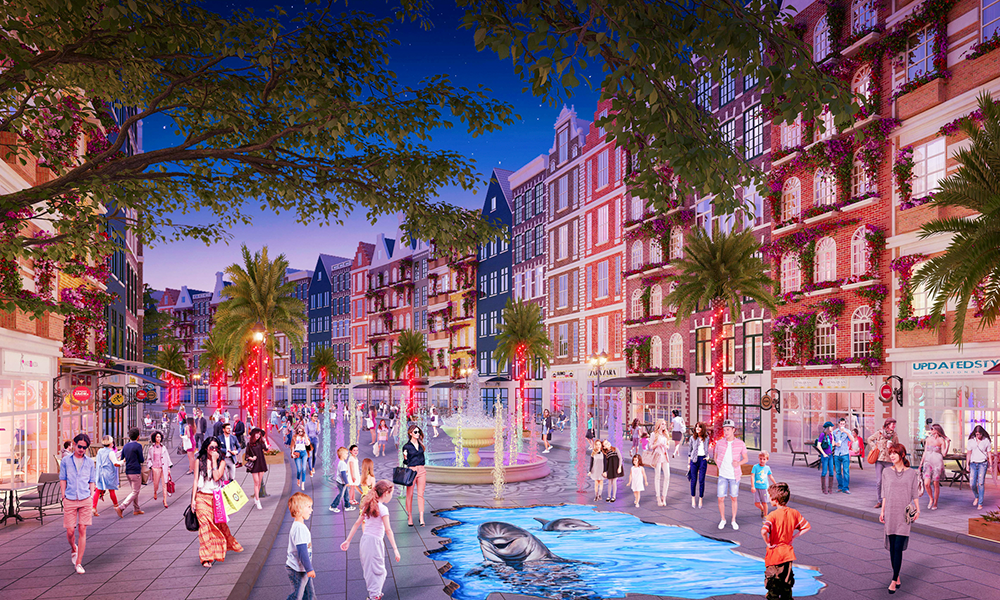 Bao quanh công viên nước là chuỗi trung tâm thương mại bán đồ thời trang và thể thao biển, tổ hợp ẩm thực biển và fastfood.